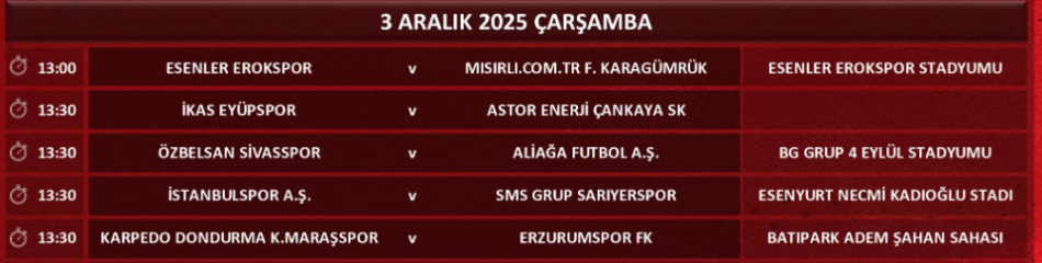 Ziraat Türkiye Kupası 4. Eleme Turu müsabakaları kapsamında Aliağa Futbol A.Ş., 3 Aralık 2025 Çarşamba günü deplasmanda ÖzbelSan Sivasspor ile karşı karşıya gelecek. Karşılaşma saat 13.30’da Sivas'ta bulunan BG Grup 4 Eylül Stadyumu’nda oynanacak.