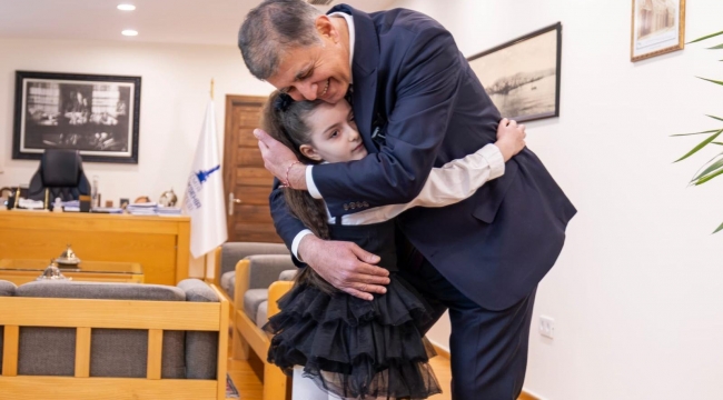 İstiklal Marşı’nın kabulünün 105. yılında, İzmir Büyükşehir Belediye Başkanı Dr. Cemil Tugay, 4 yaşından beri 10 kıtasını ezbere okuyan 7 yaşındaki Meryem Esila Şen ve ailesini makamında ağırladı. Minik Şen’le keyifli bir sohbet gerçekleşirken, Başkan Tugay hediyeler de takdim etti.