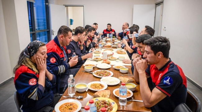 İzmir Büyükşehir Belediyesi İtfaiye Dairesi Başkanlığı’nda ekip ruhu yalnızca sahada değil, her alanda kendini gösteriyor. Ramazan ayı nedeniyle kurulan iftar sofrası için kimi çorba yapıyor, kimi salata hazırlıyor. Birbirinden lezzetli yemekler, tüm ekibin katkısıyla hazırlanıyor. Ateş savaşçıları sofralarını imece usulü kurarken, bir ihbar geldiğinde ise tüm ekip tereddüt etmeden sofradan kalkıp göreve koşuyor.